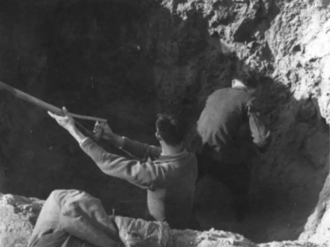 師生們正在挖掘用于火箭發(fā)動機地面試驗的土坑