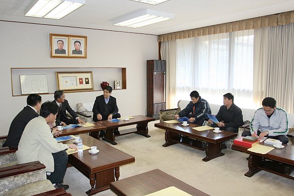 我校足球隊此次到日本參加東亞大學生足球邀請賽,受到了在日本的朝鮮大學校的熱情款待,比賽期間,代表團團長、我校副校長趙顯利率隨行教師專程訪問了朝鮮大學校,與朝鮮大學校校長張炳泰先生進行了友好座談。