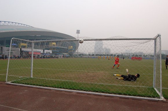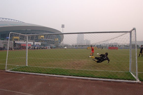 可惜的是我方第二個出場的隊員王續射門太正,被對方守門員撲出,雙方回到了起跑線上,兩輪罰球之后,雙方各進一球。