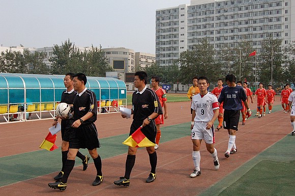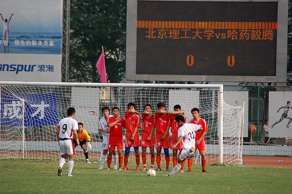 8月26日下午4點(diǎn),我校足球隊(duì)迎來(lái)了2006全國(guó)足球乙級(jí)聯(lián)賽下半程的第二場(chǎng)比賽,在主場(chǎng)迎戰(zhàn)目前排名北方賽區(qū)第四的哈藥毅騰隊(duì),最終對(duì)手在裁判的“關(guān)照”下與我方以0:0戰(zhàn)平,雙方各取1分。在今年上半程的首場(chǎng)比賽中,我校足球隊(duì)在哈爾濱客場(chǎng)曾以2:0戰(zhàn)勝對(duì)手(點(diǎn)擊進(jìn)入相關(guān)鏈接),而對(duì)手踢法粗野,觀眾缺乏文明觀賽現(xiàn)象(點(diǎn)擊進(jìn)入相關(guān)鏈接)也曾引起媒體界的軒然大波。此場(chǎng)比賽之前,哈藥毅滕隊(duì)以5勝3平2負(fù)共積18分的成績(jī)名列北方賽區(qū)第四位,而我校足球隊(duì)在少賽一輪的情況下,以6勝2平1負(fù)積20分的成績(jī)名列北方賽區(qū)榜首,因此,賽前金志揚(yáng)總教練要求隊(duì)員對(duì)此場(chǎng)比賽志在必得。