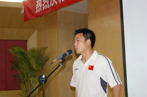 運動員代表、足球隊隊長袁微同學發言,表示將繼續加強訓練,刻苦學習,為學校的榮譽,為球隊的尊嚴,為“體育回歸教育”的理念實踐繼續奉獻大家有限的力量。