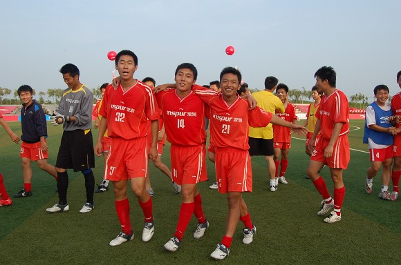 隨著終場哨音的響起,本場比賽梅開二度的17號隊員張樹也激動萬分。