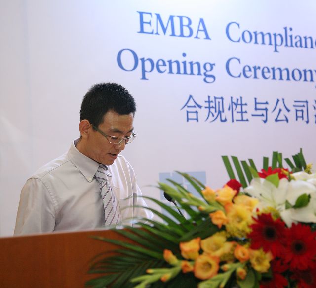 教師代表德國康斯坦茨應用科學大學Josef Wieland教授發言。他告訴與會學員,“合規性與公司治理”項目是培養具有最高職業道德和嫻熟國際商業活動運作規則的高級人才,面對跨國公司合作的全球化,公司需要規范企業和經理人員行為的全球標準,公司治理及合規EMBA項目將有利于這方面的發展。我們學校將進一步加大合作力度,發揮教育資源整合的優勢,為促進跨國公司的本土化,進一步提升公司全球的競爭力,為企業發展和EMBA培訓事業做出新的成績。
