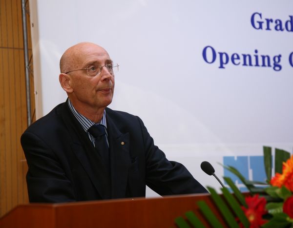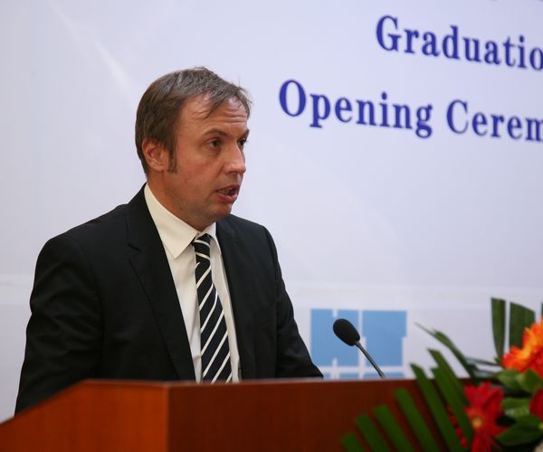 2013年9月6日下午,北京理工大學與德國康斯坦斯應用科學大學合作為國際知名汽車生產商戴姆勒公司舉辦的EMBA項目第五期畢業典禮暨第七期新生開學典禮在我校國際教育交流大廈三層報告廳隆重舉行。參加典禮的嘉賓有:北京理工大學副校長孫逢春教授、戴姆勒大中華區首席財務官Helmut Ruhl先生、人力資源總監Juergen Hartwig先生、康斯坦斯應用科學大學Josef Wieland教授、Roland Luxemburger先生、因戈爾斯塔特科技大學Thomas Doyé教授、我校國際教育合作處王慶林處長、教師代表張平淡、國際教育學院梅文博院長、蔣志湘副院長、第五期畢業生、第七期新學員。典禮由梅文博院長主持。