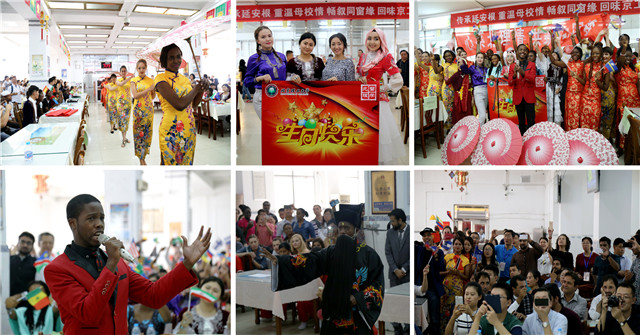 中午12點(diǎn),正是承擔(dān)校友就餐任務(wù)的教工食堂用餐高峰期。在川流不息的人群里,突然出現(xiàn)一群身著旗袍、手持紙傘的外國面孔,伴隨著動感十足的樂曲,她們成群結(jié)隊(duì)、手舞足蹈,頓時(shí)點(diǎn)燃了食堂里所有就餐人員的熱情,大家紛紛掏出手機(jī),記錄下這歡樂美好的一刻。這就是我校外國留學(xué)生們?yōu)樾c開放日精心準(zhǔn)備并刻苦排練的快閃活動,通過舞蹈、京劇、武術(shù)、美聲、合唱等表演形式,充分展示了他們的藝術(shù)才華和對中國風(fēng)俗文化的深刻理解,也為廣大校友們獻(xiàn)上了一場“洋”味十足的中國文化大餐。