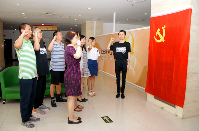討論結束后,全體黨員在組織委員趙琳的帶領下面對黨旗再次重溫入黨誓言,將此次的主題活動推向高潮。