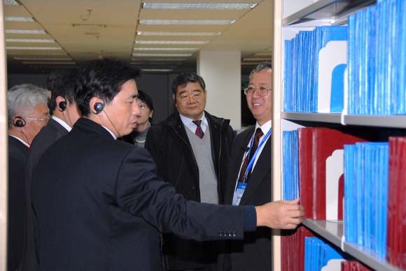 11月14日上午,教育部本科教學(xué)工作水平評(píng)估專家組成員在學(xué)校領(lǐng)導(dǎo)的陪同下來到圖書館考察工作。在圖書館大廳,張永發(fā)館長向各位專家介紹了圖書館概況,在觀看了“日新月異的北京理工大學(xué)圖書館”的展板之后,專家們實(shí)地考察了多媒體閱覽室、報(bào)刊閱覽室和中文自科圖書閱覽區(qū)等,考察過程中專家們在張館長的講解下邊走、邊看、邊問。