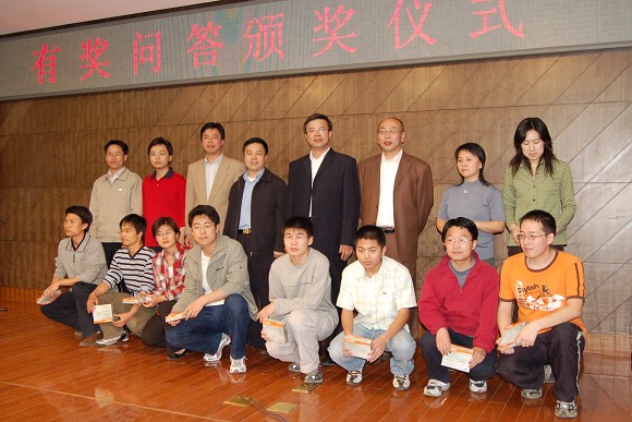有獎問答活動是針對宣傳?縷詡淥侔斕慕滄械?,範N?1000余人參加了在線答題,其中有12位讀者獲獎,獎品為容量1G的U盤。頒獎儀式上黨委副書記、副校長楊賓,黨委副書記趙平,校團委書記張啟鴻和圖書館館長曹樹人為獲獎者頒發了獎品并對他們表示祝賀。
