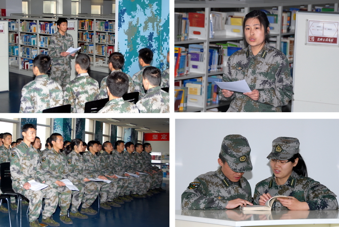 張翔等十名同學分別以《海圖騰之中國航母》、《祖國不會忘記>》、《歷史的震撼》、《淺談基層干部如何帶兵》、《關于部隊基層文書的心得體會》、《紅日》、《狼圖騰》等題目進行了演講,與大家分享了他們的讀書心得,表達了這些未來人民軍官心系國防,知識報國的強軍夢想和軍旅情懷。