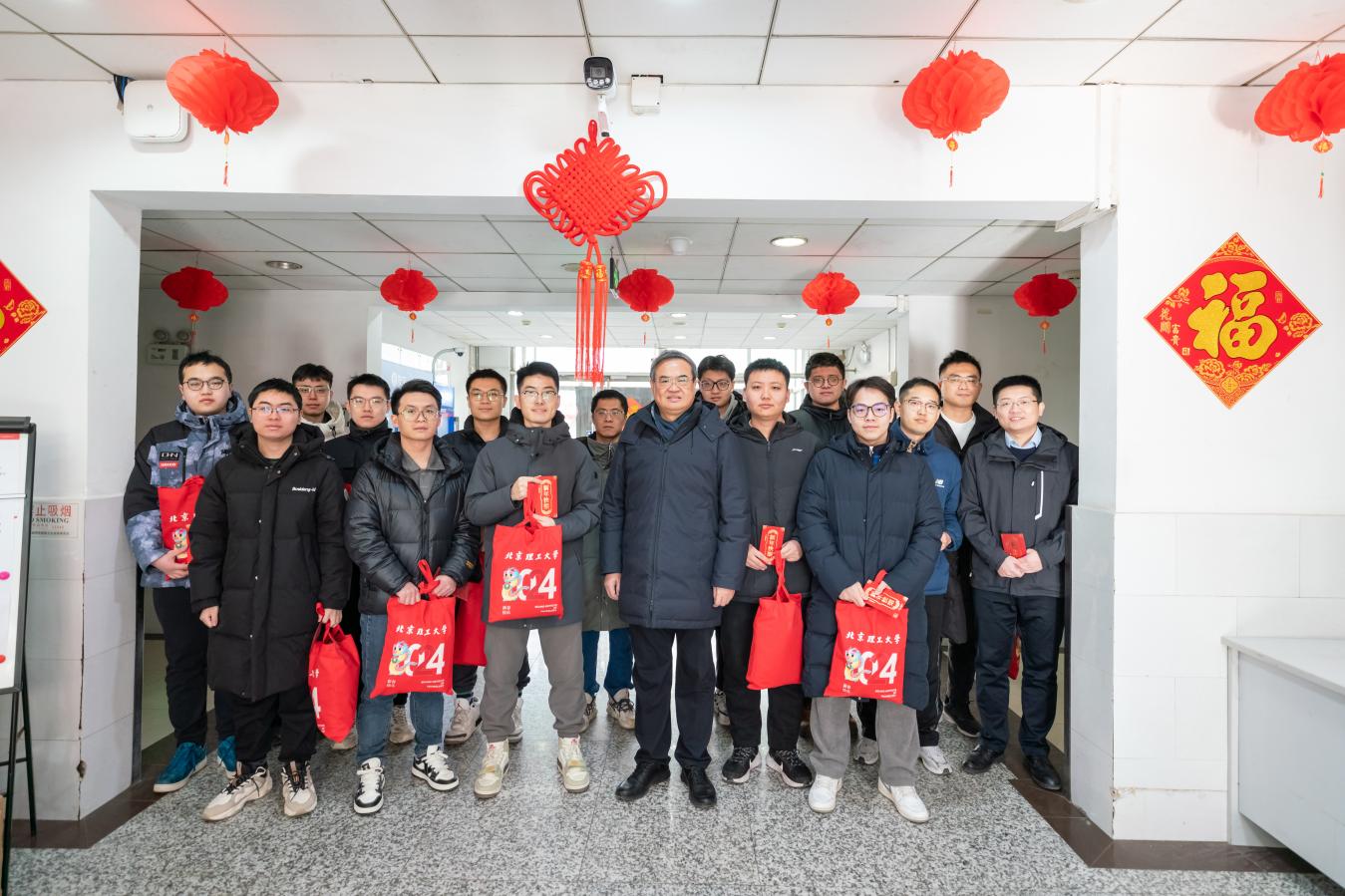 金龍獻瑞,恭賀新春,甲辰龍年新春佳節來臨之際,校黨委書記張軍、校長龍騰分別率隊到學校中關村校區和良鄉校區,看望慰問春節期間在崗教職工和留校學生,代表學校向他們送上節日問候和新春祝福。