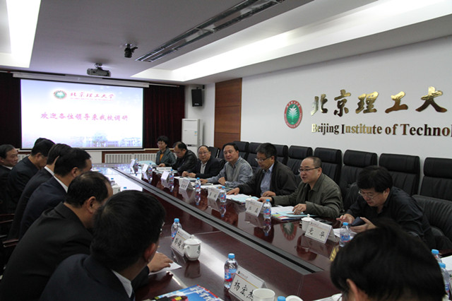 王曉鋒首先對(duì)胡五岳、石迎軍、黃海嵩一行表示歡迎。他介紹了近年來學(xué)校在校地合作的發(fā)展情況,強(qiáng)調(diào)學(xué)校“立足國防、服務(wù)地方”的目標(biāo),并祝愿校地合作能夠順利開展。