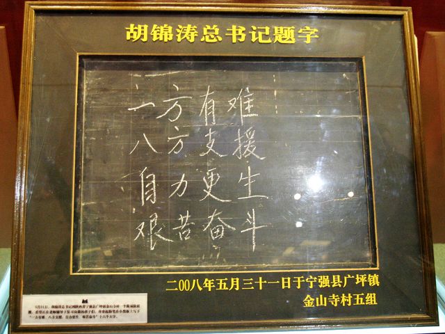 胡錦濤總書記在寧強縣廣坪鎮(zhèn)的題字
