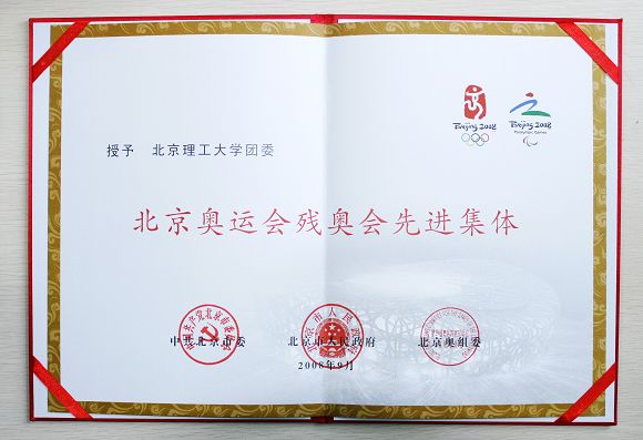 北京奧運會殘奧會先進集體及個人榮譽證書