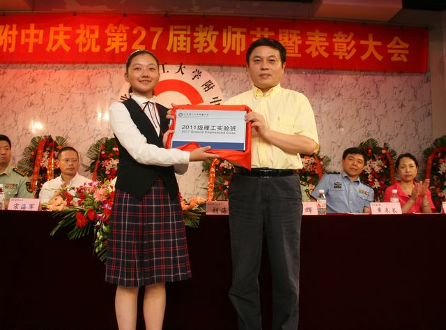 胡海巖校長向理工附中優(yōu)秀生源基地授牌,并為理工附中設立的國內首個中學“理工實驗班”授牌。
