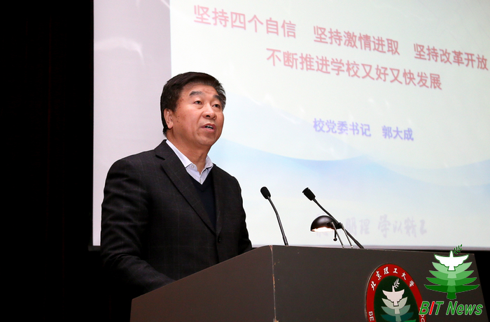 校黨委書記郭大成作了題為《堅持四個自信 堅持激情進取 堅持改革開放不斷推進學(xué)校又好又快發(fā)展》的講話。講話從四個方面分析了學(xué)校發(fā)展的形勢、問題和不足。