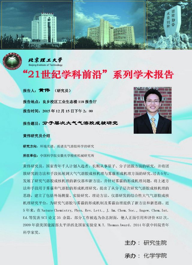 【化學(xué)學(xué)院】“21世紀(jì)學(xué)科前沿”黃偉研究員學(xué)術(shù)報(bào)告通知