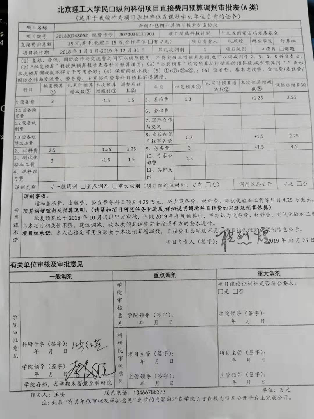 項目201820748052預算一般調劑公示