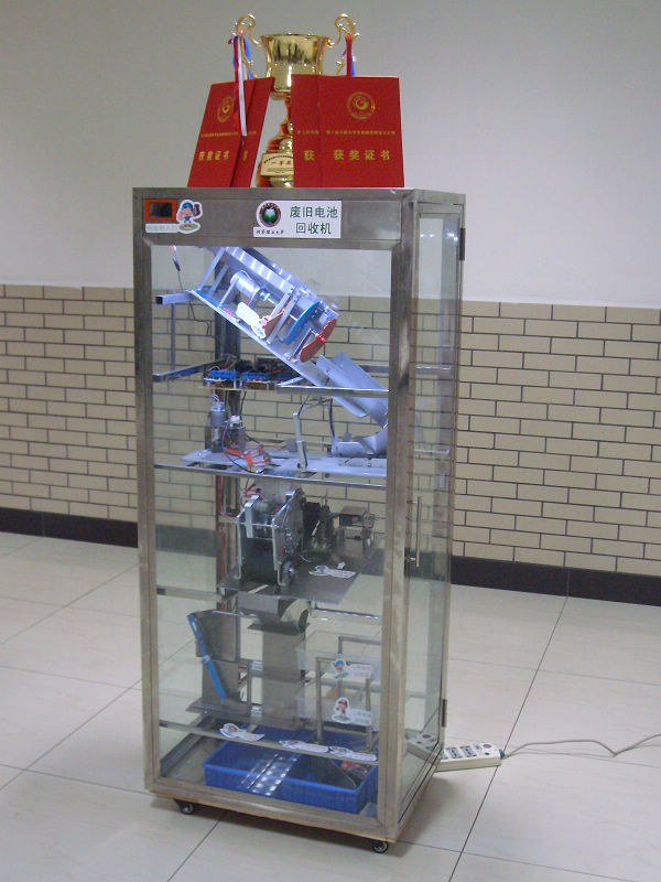 在剛剛結束的第三屆全國大學生機械創(chuàng)新設計大賽中,我校參賽的作品“廢舊電池回收機”獲得了全國一等獎!