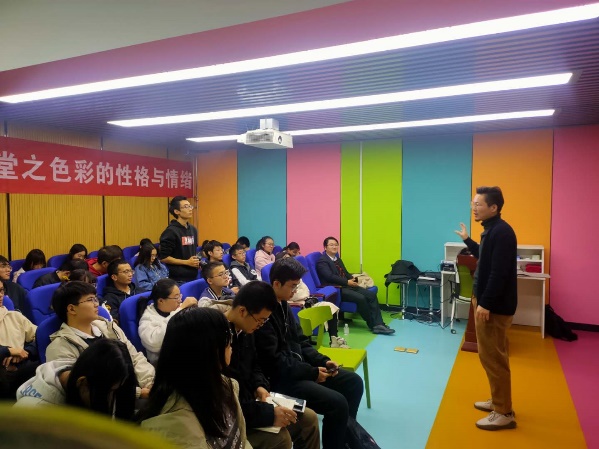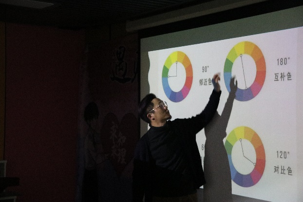 本次講座的主題是帶大家了解色彩中蘊含的性格與情緒以及色彩的搭配。講座開始后,首先由汪建宇老師簡單介紹了知行講堂的來源、活動內容以及重大意義,并向大家介紹了主講人龔佑軍老師。隨后講座正式開始,龔佑軍老師先是給出幾種顏色,在與大家有趣的互動中講述了不同場合顏色的巧妙應用以及各種顏色帶來的生理效應,引出了講座主題。龔老師指出,從一個人喜歡的顏色中就可以看出一個人的性格,比如紅色對應著表現型人格,而黃色對應著領導型人格等,并通過著名畫家梵高的例子為大家具體說明了色彩與性格的對應關系。隨后,龔老師又通過各種電影中色彩的情緒表達向大家介紹了色彩與情緒的內在聯系,以在電影《辛德勒的名單》中的紅衣女孩為例等讓大家有了更深入的了解。然后,龔老師向大家介紹了不同的色彩搭配會給人怎樣的感覺,也給大家的日常穿搭等提出了一些建議。