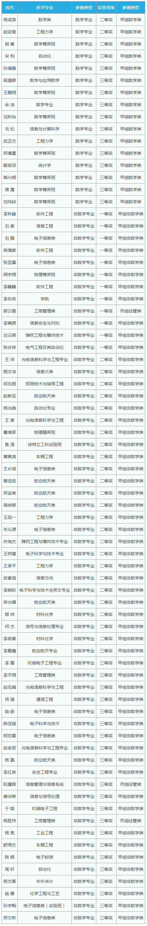 教育教學?>?第九屆全國大學生數學競賽獲獎名單