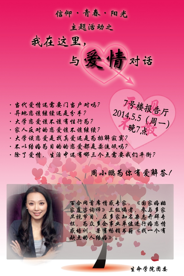 ?>?生命學院“信仰·青春·陽光”主題活動之“我在這里,與愛情對話”講座預告
