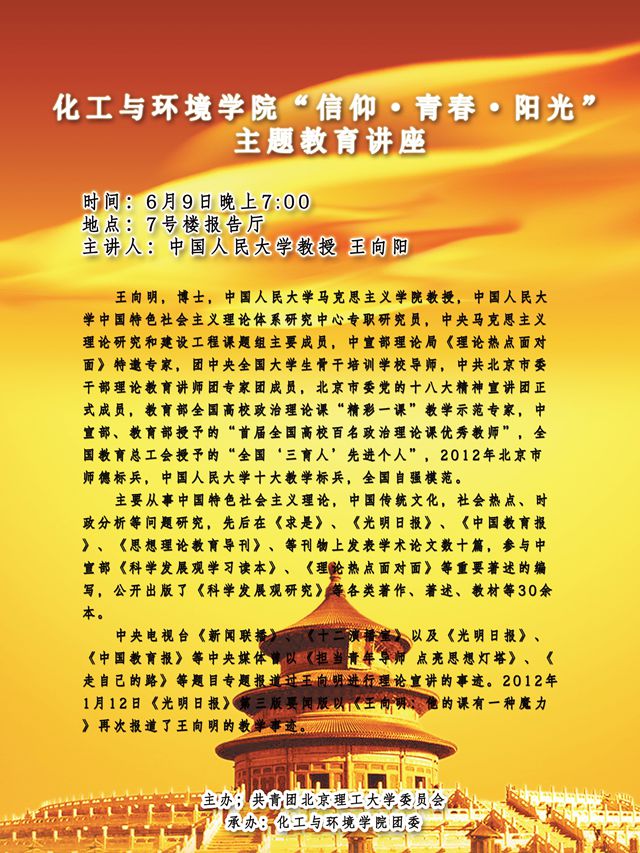 化工與環境學院信仰·青春·陽光主題教育講座