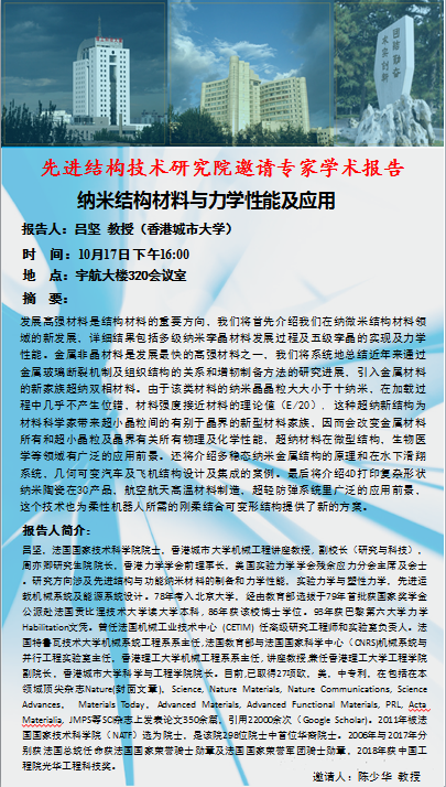 ?>?【先進(jìn)結(jié)構(gòu)技術(shù)研究院】香港城市大學(xué)呂堅(jiān)教授講座預(yù)告