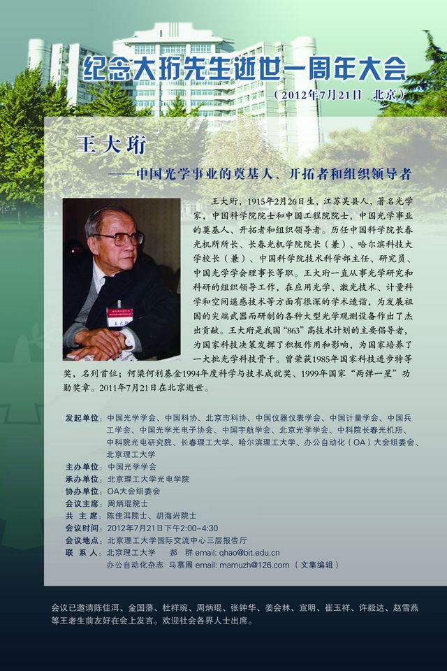 ?>?【光電學(xué)院】紀(jì)念王大珩先生逝世一周年大會(huì)公告