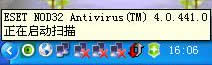 安裝完成之后,NOD32軟件將以圖標(biāo)的形式,出現(xiàn)在Windows桌面右下角的托盤區(qū)域,并自動進(jìn)入“掃描”流程。