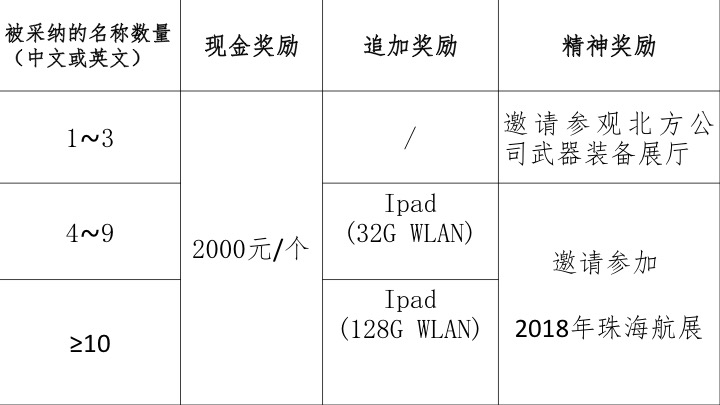 1.北方公司適時確定名稱最終方案,被采納的方案作者將獲得獎勵。具體如下: