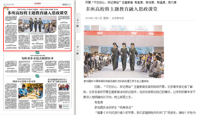 日前,“不忘初心、牢記使命”主題教育在高校陸續開展,北京青年報記者了解到,北京各高校開展主題教育活動的過程中,也紛紛探索出自己的模式,讓學校的青年學子更深入地明確成長方向,樹立報國之志。