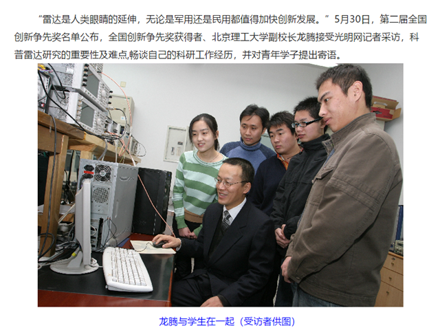 對于自己的科研方向,龍騰教授打了一個有趣的比方:“我科研的主要方向是建立新體制的雷達系統和實時信息處理。如果將雷達比作一個人,它包括眼耳鼻舌和大腦,我主要研究雷達里面大腦的那一塊。”