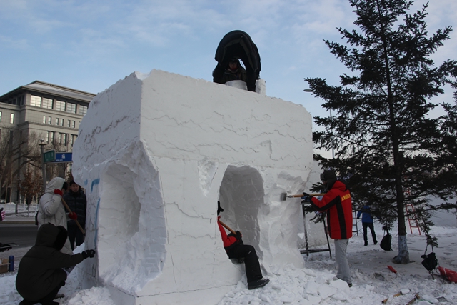 在孫飛看來,“大學生參加的雪雕大賽,應該與社會上的雪雕大賽有所區別。不只是簡單地雕刻一個兵馬俑、喜羊羊,還要通過作品升華內涵、表達意境,更要體現大學生對社會的責任意識和創新意識。”穩重而有內涵,也正是這所以理工著稱的高校的學子性格。