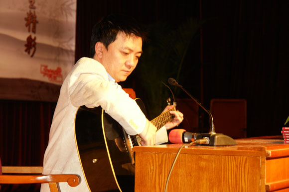 在董先生演講結束之前,他特地為我們彈奏了一曲吉他,并親自演唱了自創(chuàng)歌曲《在你向我微笑的一瞬間》,嗓音很有質感,感情很真摯!