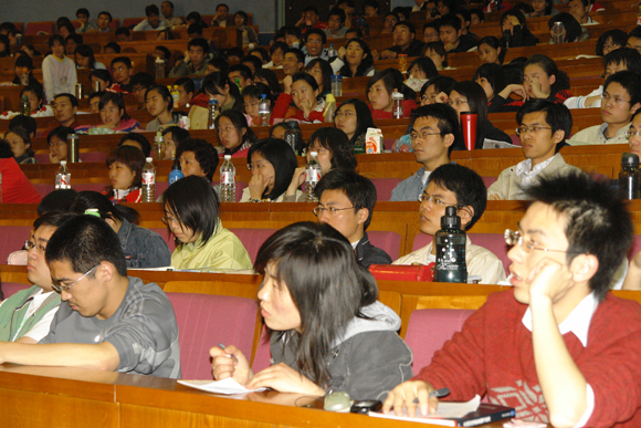 同學(xué)們對(duì)這次講座十分期待,早早地來(lái)到了會(huì)場(chǎng)。在一片熱烈的掌聲中,舒先生進(jìn)入了會(huì)場(chǎng)并很快開始了他的演講。