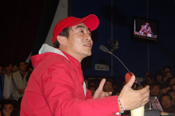 2007年4月16日晚7:00“聆聽智慧”名家論壇的第十七期在中心教學(xué)樓一層報(bào)告廳舉行。中國(guó)最經(jīng)典的電視劇《西游記》中孫悟空的扮演者章金萊老師應(yīng)邀來到我校,為我?guī)熒鲱}為《六小齡童品西游》的專題講座。