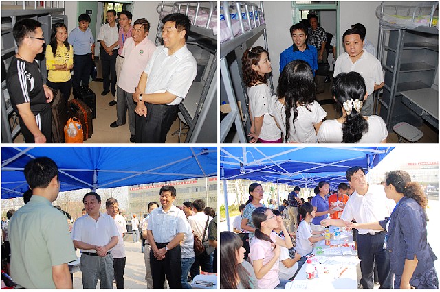 黨委書記郭大成、校長胡海巖、副校長副書記楊賓、副書記侯光明、紀委書記楊蜀康、副校長趙顯利、李和章等親臨現場指揮,看望新生及家長。