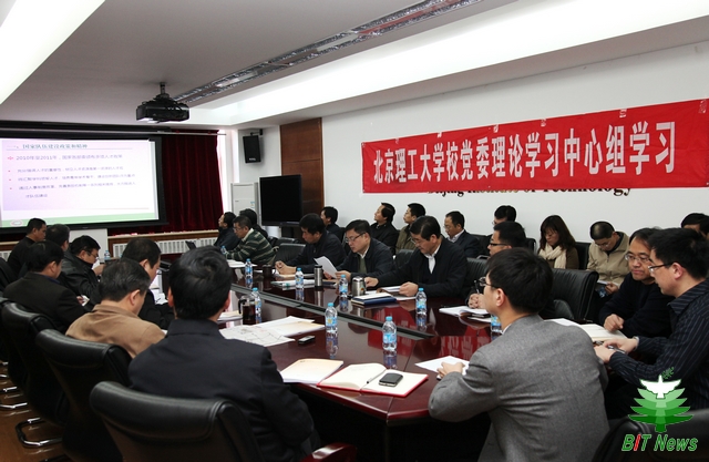 11月30日,北京理工大學黨委理論學習中心組召開(擴大)學習會,專題學習中央關于人才工作精神,研討我校師資隊伍建設工作。會議由校黨委書記郭大成主持。黨委理論學習中心組成員、各學院及有關部門主要負責同志近40人參加了學習。