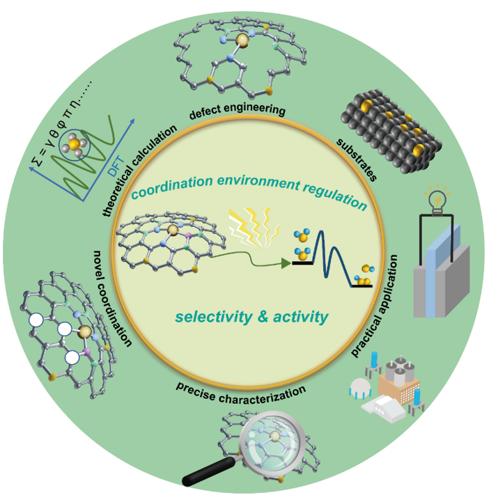 氧還原反應(ORR)是燃料電池和金屬-空氣電池中重要的半反應,也是電合成H2O2的一種經濟有效的方法。然而,低選擇性和活性的問題仍然需要解決。合理優化ORR活性和選擇性的關鍵是控制電催化劑的電子結構。碳支撐的原子分散金屬位點(C-ADMSs)特征是在碳基底中具有明確的局部配位結構的孤立金屬原子,其中的配位鍵、鍵長和配位數可以被調節,從而改變ORR的選擇性/活性。得益于其金屬酶樣特性,C-ADMSs已成為一個理想的可調平臺,可控制ORR的選擇性和活性。因此,深入總結C-ADMSs中金屬中心配位環境對ORR活性和選擇性的調控具有重要意義。