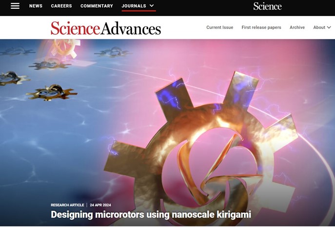 近日,北京理工大學物理學院李家方教授、姚裕貴教授團隊,與北理工機電學院/集成電路學院張帥龍教授團隊、以及國內外多家單位合作,提出并實現了游離態納米剪紙轉子的光電鑷自由操控。通過利用納米剪紙精密制造、滴定腐蝕精確釋放以及光電鑷精準操控等創新技術,首次實現了納米剪紙轉子的原位高效釋放和光電協同多模態自由操控,并探索了其操控行為的內在物理機制和微通道器件應用潛力。該創新成果發表在《科學》子刊Science Advances上,并被Science主刊和Science Advances同時選為主頁Highlight研究亮點報道。