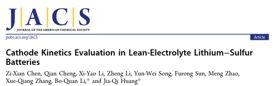 Zi-Xian Chen, Qian Cheng, Xi-Yao Li, Zheng Li, Yun-Wei Song, Furong Sun, Meng Zhao, Xue-Qiang Zhang, Bo-Quan Li,* and Jia-Qi Huang*, Cathode Kinetics Evaluation in Lean-Electrolyte Lithium?Sulfur Batteries, J. Am. Chem. Soc., 2023, DOI: 10.1021/jacs.3c02786.