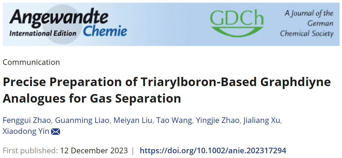 近日,北京理工大學化學與化工學院博士生趙豐貴第一作者身份在國際頂級期刊《Angewandte Chemie International Edition》發表題目為“Precise Preparation of Triarylboron-Based Graphdiyne Analogues for Gas Separation”的研究論文(DOI: 10.1002/anie.202317294)。北京理工大學為論文第一通訊單位,北京理工大學化學與化工學院尹曉東特別研究員為通訊作者。