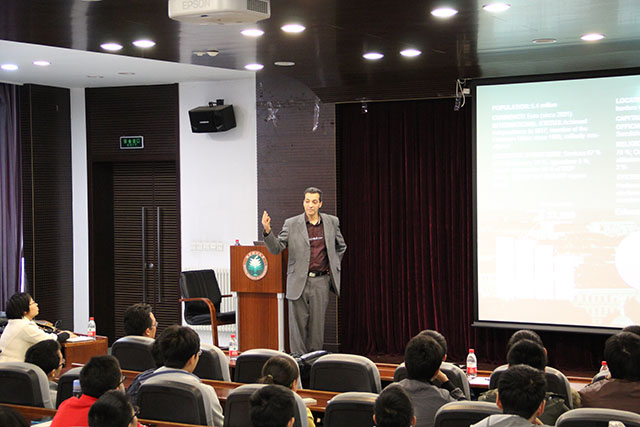 在訪問期間內,Belahcen教授針對電機多場耦合分析、電磁場非線性磁滯建模與數值計算、磁致伸縮與磁致彈性作動器等研究領域做了多次學術報告,詳細介紹了電機磁場/應力場/溫度場耦合分析、交流電機時域周期動態建模與辯識、電磁場磁滯非線性建模與損耗分析、磁致伸縮與磁致彈性執行器分析與設計等方面的發展現狀和研究成果。Belahcen教授的報告學術氣氛濃厚,大大開拓了與會師生的視野,引起了師生的廣泛興趣和共鳴,與會師生深感受益。