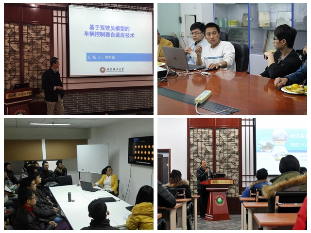 以電動車輛研究為主題的兩場學術沙龍分別在9月25日以及10月7日舉行。在兩次活動中,彭劍坤和潘登同學做了主題為“基于馬爾科夫鏈的城市公交道路循環(huán)工況構建”以及“基于工況識別的混合動力汽車控制策略仿真”的學術匯報;車輛系的王志福老師從“整車技術”、“電動化部件技術”和“電源系統(tǒng)技術”三個方面對電動汽車技術進行了展望,并結合科研經歷暢談了自己對電動汽車應用戰(zhàn)略的幾點思考。