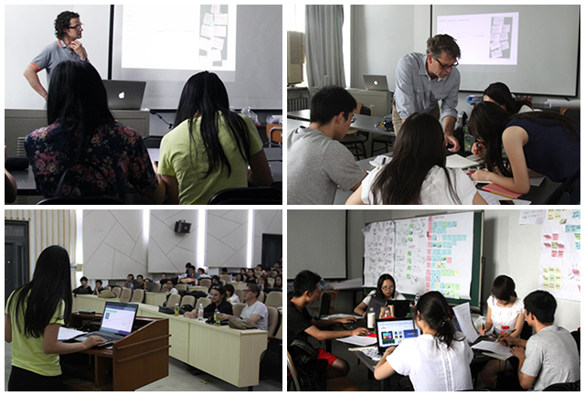 訪問期間,兩位教授舉辦了為期一周的以“探討霧霾預防與管理的解決方案”為主題的設計工作坊,我院工業設計方向專業學位研究生27人,在兩位德國教授和我院教師的指導下,經過5天的團隊合作,通過腦力激蕩、方案構想等幾個單元,每個小組均完成了一次比較深入的設計過程,并進行了最終的匯報宣講。同學們不僅領略了德國式設計教育方法和理念,也展示出了自身優秀的專業能力和良好的團隊合作精神,得到兩位教授的高度肯定。