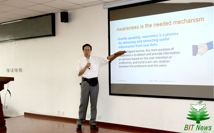 趙強福教授首先簡單介紹了Aware Theory的基本概念和內涵,然后清晰透徹地介紹了3-Value Logic Aware System模型;在此基礎上,形象具體地通過實際例子介紹了Aware Theory在Intelligence Home和Information Security等方面的應用。趙教授的報告圖文并茂,生動活潑,與會師生認真聽取了此次報告。報告結束后,趙教授回答了老師和同學們的相關問題。