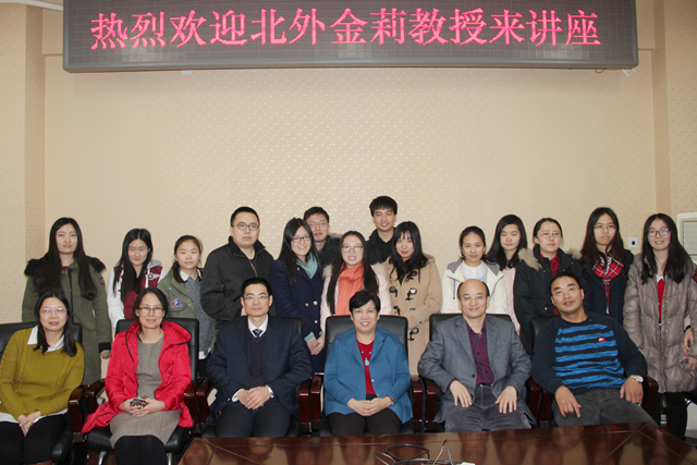 2015年12月15日,北京理工大學外國語學院英語系英美文學中心邀請到北京外國語大學博士生導師金莉教授,為外語學院師生做了題為“斯托夫人的‘紅與黑’:談斯托的反種族主義思想與種族主義偏見”的學術講座。外語學院黨委書記陳大明、院長李京廉與部分師生共同聽取了講座。講座由外語學院教師鮑忠明主持。