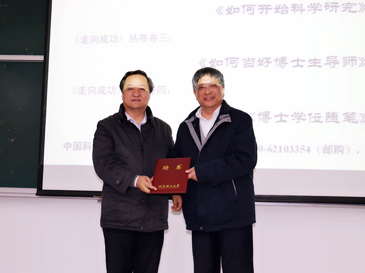 王軍政教授為馮長根教授頒發(fā)“交叉科學(xué)論壇”特邀報(bào)告人聘書。指出青年學(xué)者代表著學(xué)校的未來,希望青年學(xué)者們能夠借助“交叉科學(xué)論壇”平臺加強(qiáng)交流與合作;感謝馮教授能在百忙之中抽出時(shí)間來為青年學(xué)者們指點(diǎn)迷津,將自己30余年從事教學(xué)科研的寶貴經(jīng)驗(yàn)傳授給青年學(xué)者,讓他們少走彎路;感謝張忠廉教授來參加論壇活動(dòng),張教授已81歲高齡還細(xì)致耐心地指導(dǎo)學(xué)生科技創(chuàng)新實(shí)踐,依然充滿熱情地工作著,是所有青年學(xué)者們的學(xué)習(xí)榜樣,這種兢兢業(yè)業(yè)的工作態(tài)度也是每一個(gè)優(yōu)秀的青年學(xué)者都應(yīng)該具備的。