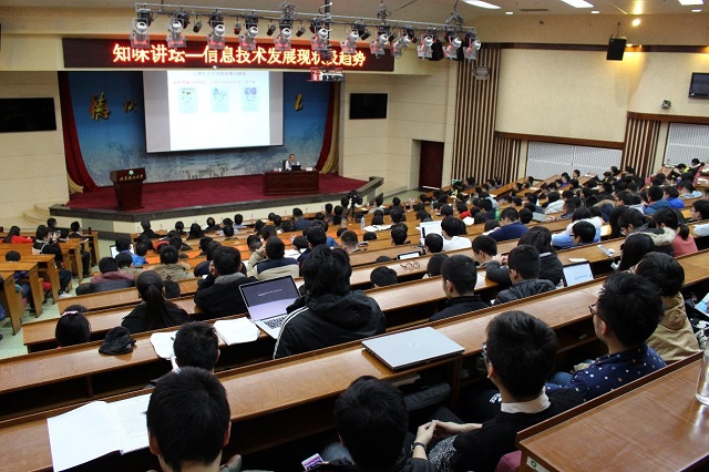 講座中,梅宏從信息技術對人類社會發展的重要意義、信息技術發展及當前熱點、信息技術發展的未來趨勢等三個部分,向在場師生介紹信息技術變革的前世今生,并帶領大家展望波瀾壯闊的明日信息技術世界。