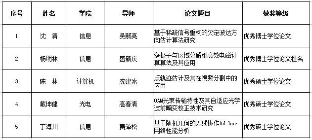 2016年9月收到中國(guó)電子學(xué)會(huì)通知后,研究生院高度重視,積極組織各學(xué)院進(jìn)行申報(bào),在各學(xué)院及導(dǎo)師、研究生的共同努力下,最終北理工2名博士生、3名碩士生獲得優(yōu)秀學(xué)位論文獎(jiǎng),獲獎(jiǎng)總篇數(shù)與上海交通大學(xué)、電子科技大學(xué)、北京郵電大學(xué)并列位居全國(guó)高校第二名(清華大學(xué)位居第一名)。